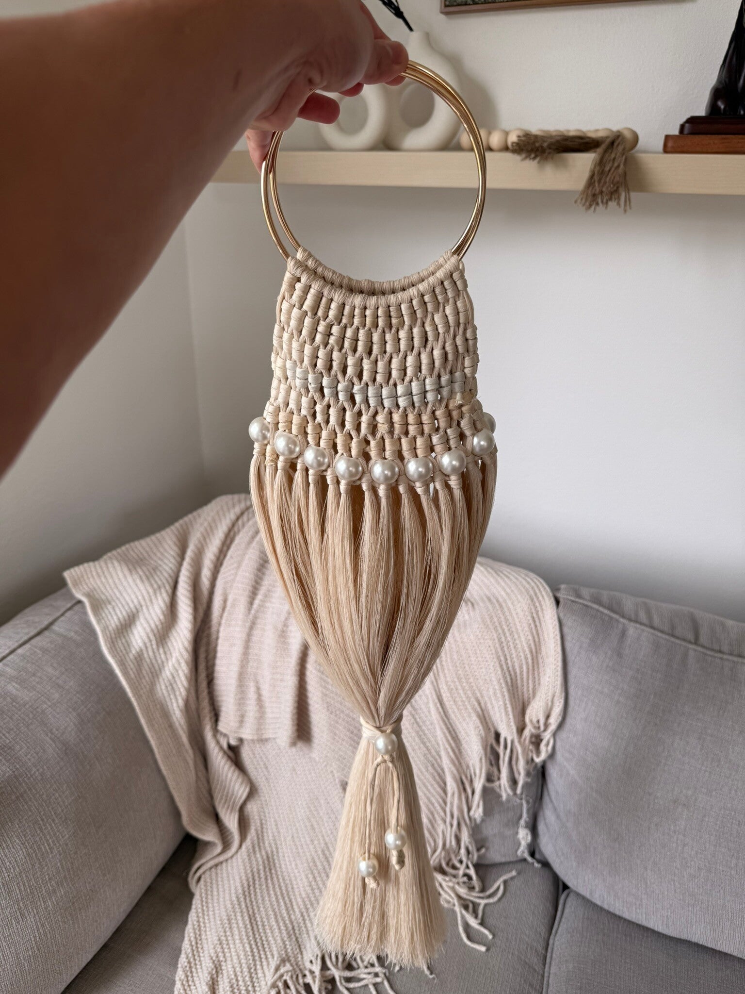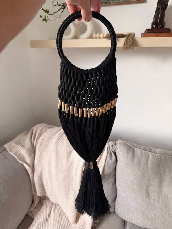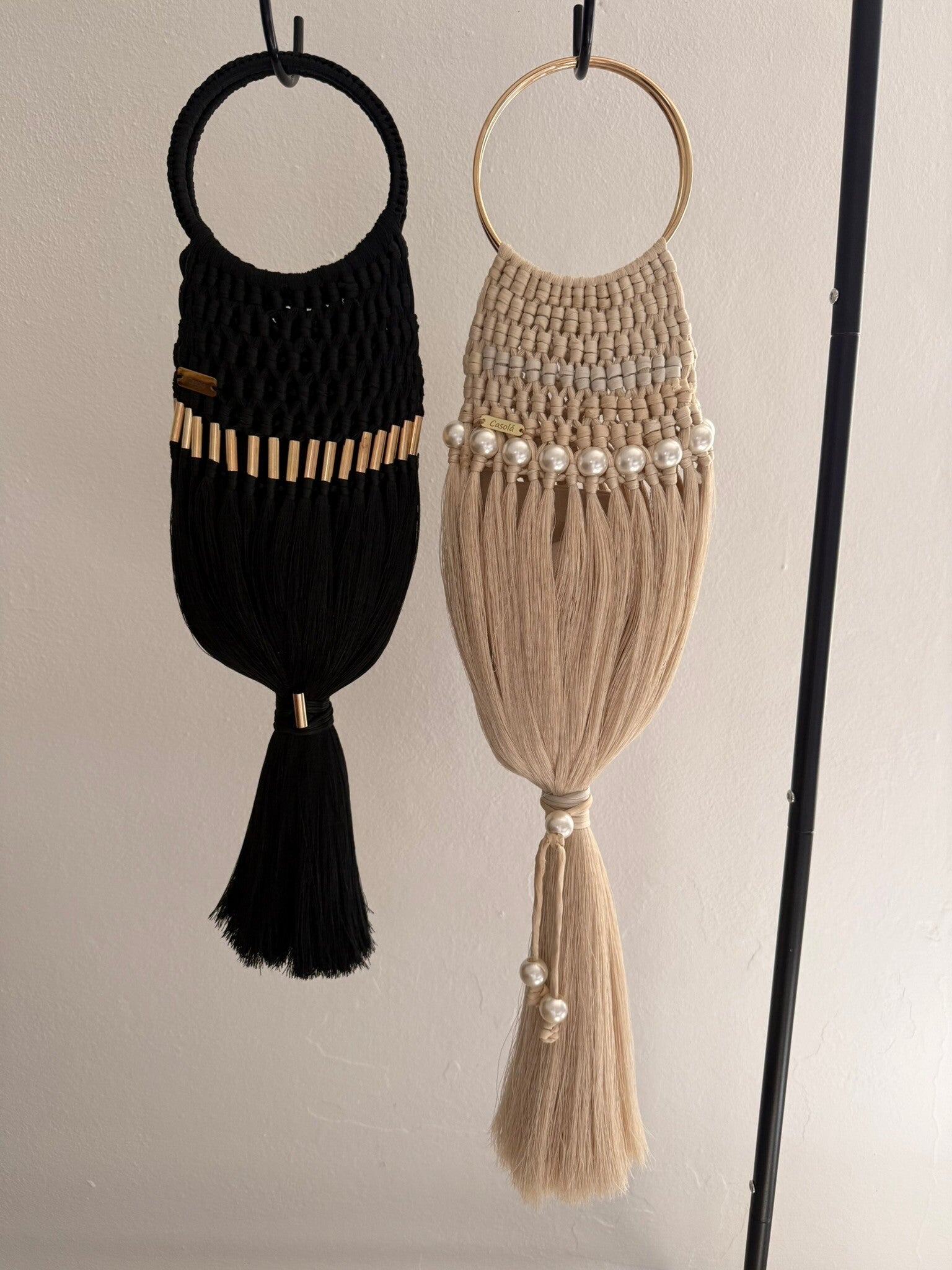 Cartera creada en hilo peinado con asas en metal, bisutería fina y forro para interior en tela satinada. Con de medidas de 10" de profundidad. Creada para resaltar tu elegancia natural y hacerte destacar en cualquier ocasión.